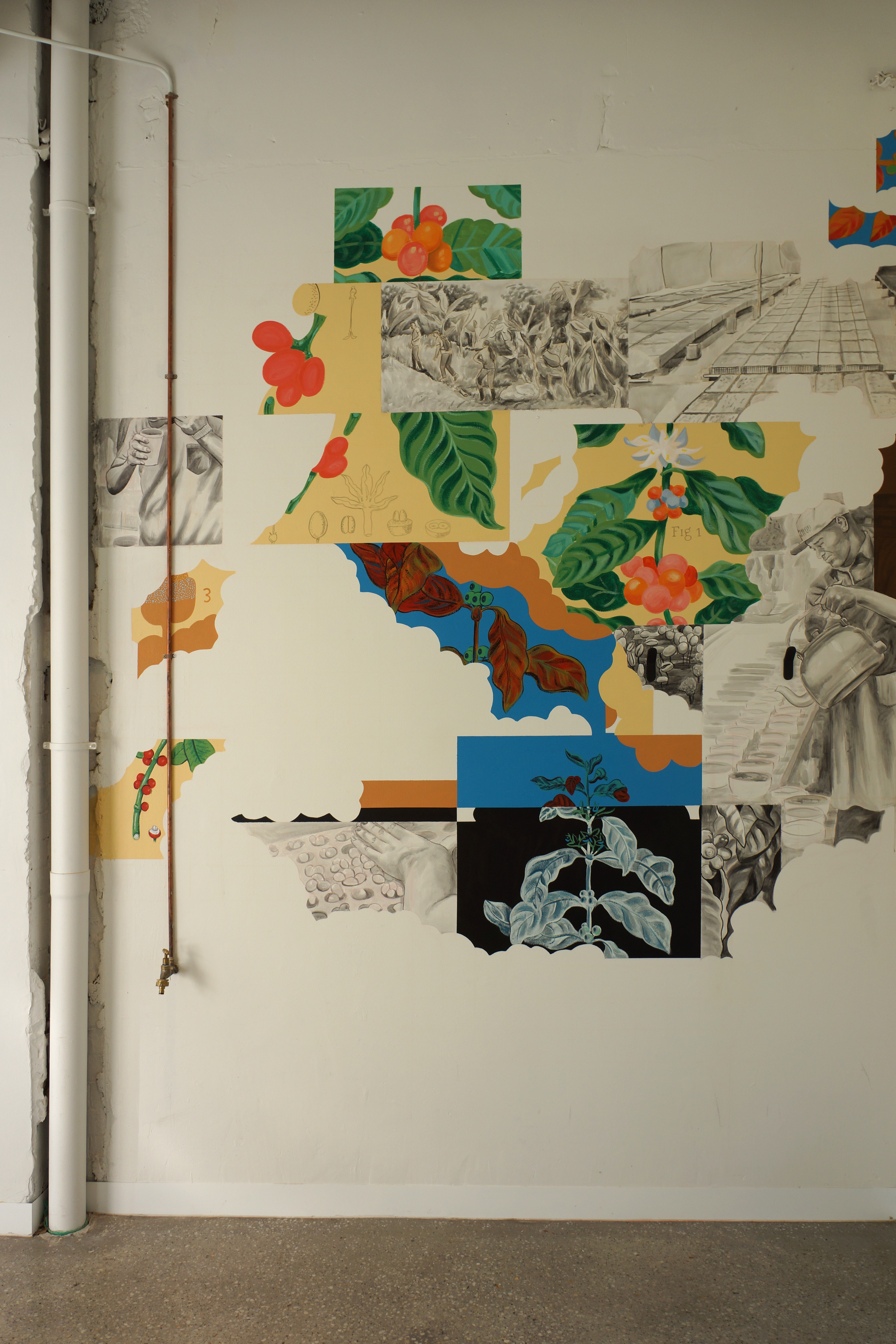 Painted in the beautiful new office of Langdon Coffee Merchants, these two murals bring together the coffee making process with the final product - in your hand and ready to be sipped.